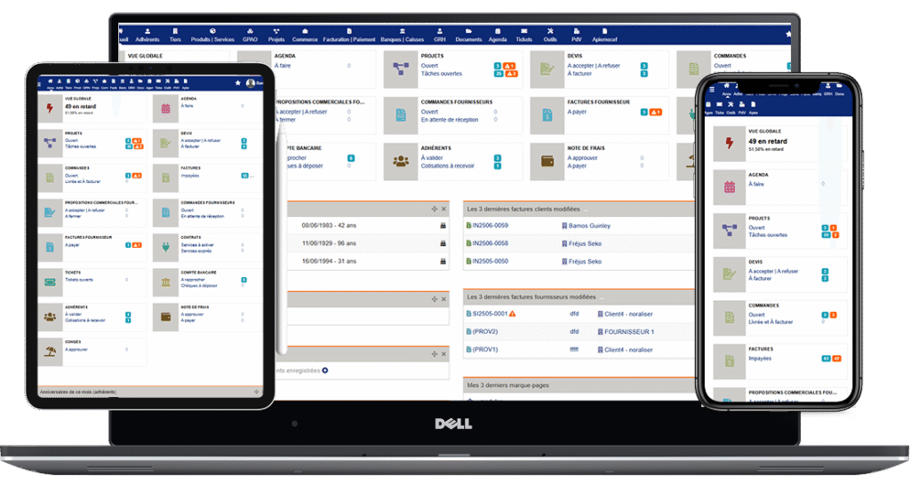 - Gestion avancée (stocks, projets, RH)